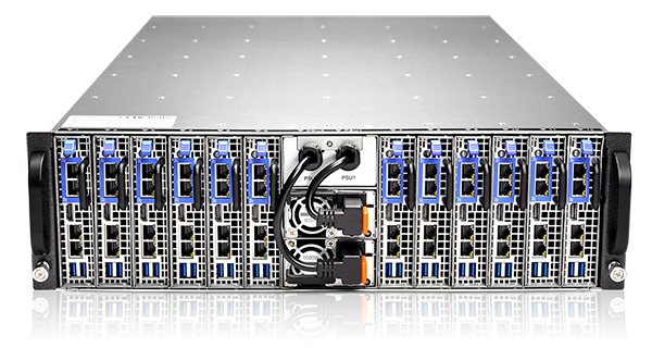 微拍堂官网的S312-S24R刀片服务器集群系统3U机箱内包括12个E3 处理器刀片服务器,单个处理器带有2个视频处理核心,单个刀片可配置64G内存,2个6TB硬盘,整个系统可配置144TB存储容量,对建立基于云或 hadoop技术的视频处理系统,具有极高的性价比。服务器内部结构如下: